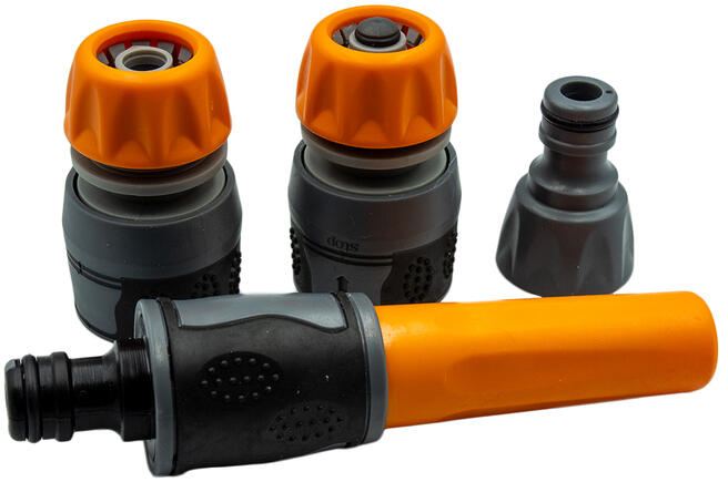 • A 4 részes induló készlet segítségével könnyen és gyorsan csatlakoztathatja a kerti tömlőket.