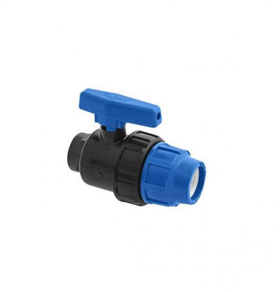 KPE golyóscsap 20x3/4 belső menet Golyós csap a gyorskötő idomoknál használt szorítókötéssel csatlakozik a csőhálózathoz, amely csökkenti a csatlakozások számát, így garantálva a megbízható működést és a könnyebb összeszerelhetőséget. Ezek a csapok víz és tápoldatok továbbítására használhatóak. Biztonságos és gyors csatlakozási lehetőséget biztosít a vízhálózathoz, föld feletti és aknában való alkalmazásra egyaránt. Műszaki adatok: